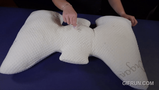 Sensitive ears? Prevent the smushed ear effect by carving out the WingsPillow's fill to create a space for your ear.